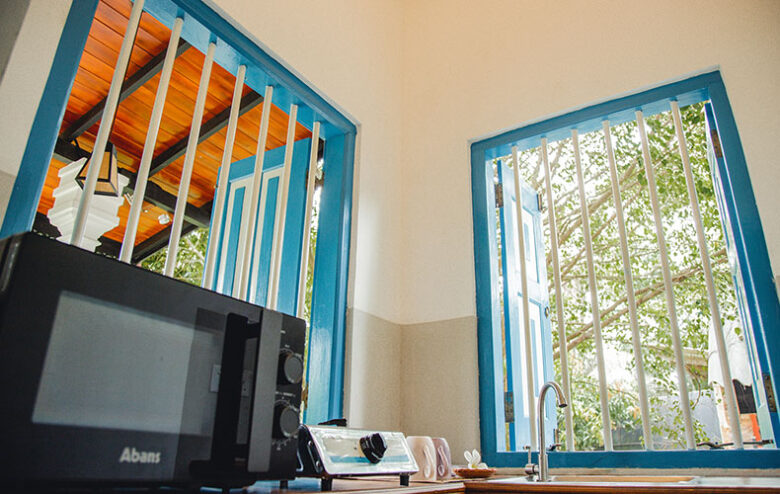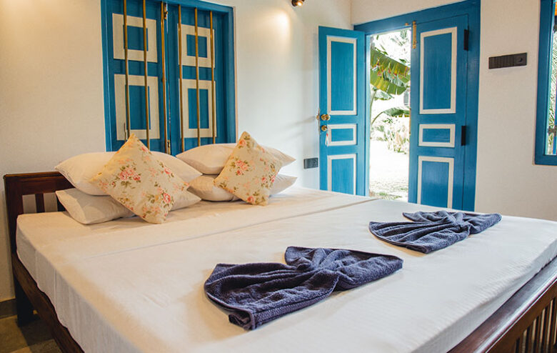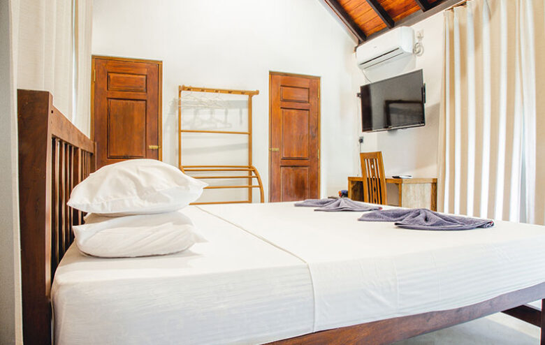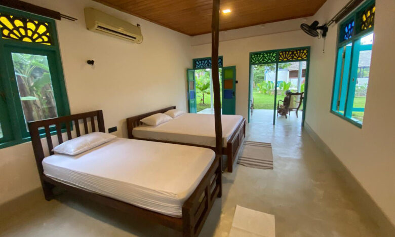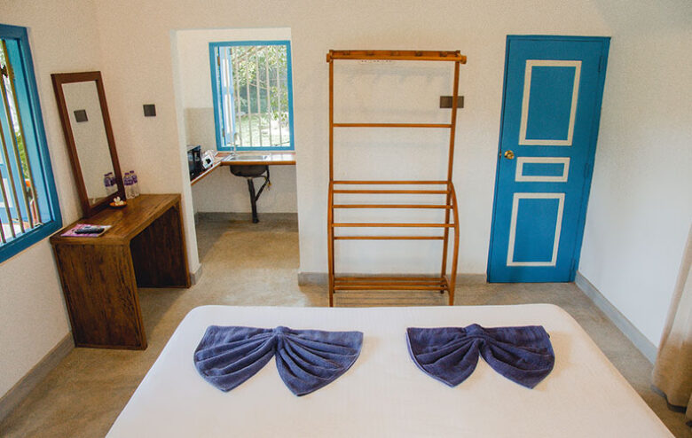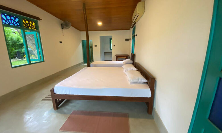 Large Queen Bed, A/C, Bath with hot water, Kitchenette, Hair dryer, tea/coffee making facilities. This Cottage also has two separate Single Rooms with same facilities.